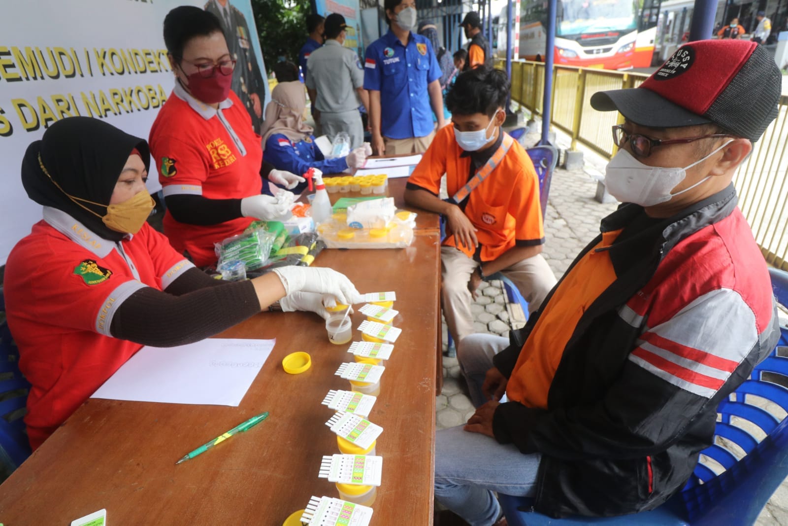 Pemeriksaan tersebut bertujuan mengetahui kandungan narkoba atau psikotropika dalam cairan urine awak bus.