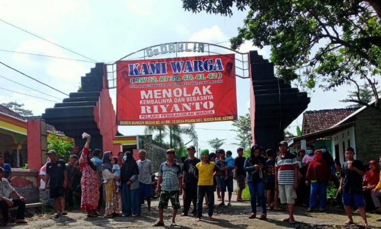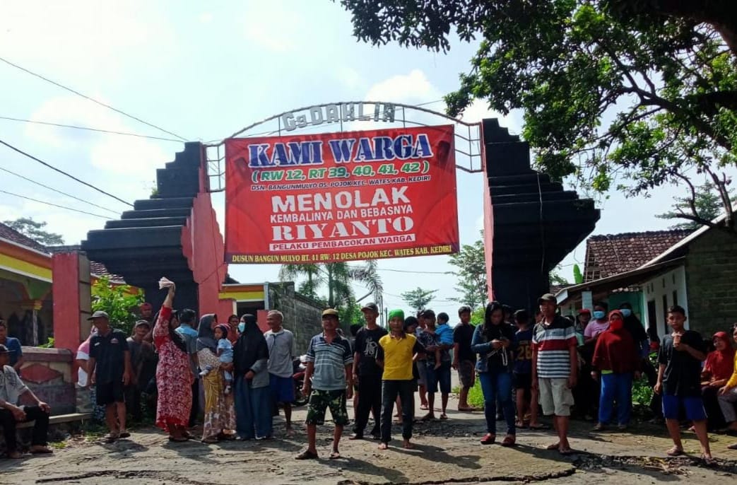 Kediri ,Gelar Fakta – Ratusan warga Dusun Bangunmulyo Desa Pojok Kecamatan Wates Kabupaten Kediri melakukan aksi menolak kepulangan pelaku pembunuhan berinisial R, Jumat (25/3/2022).