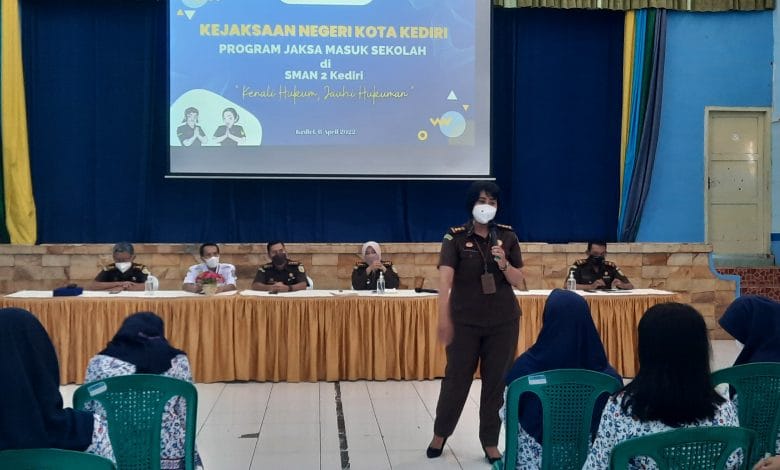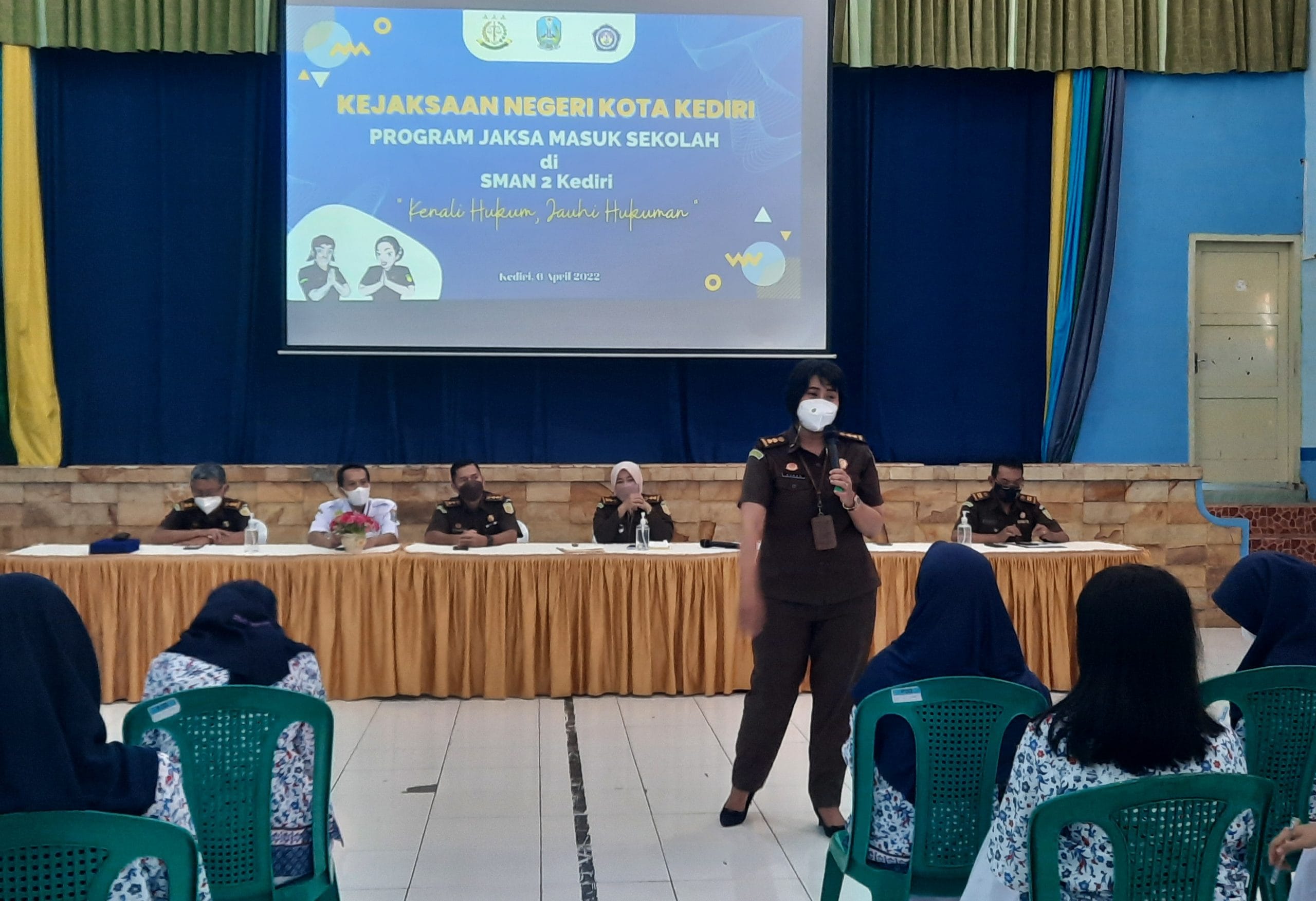 Kediri, Gelar Fakta – Kejaksaan Negeri (Kejari) Kota Kediri melaksanakan giat jaksa masuk sekolah di SMA Negeri 2 Kota Kediri, Rabu (6/4/2022).