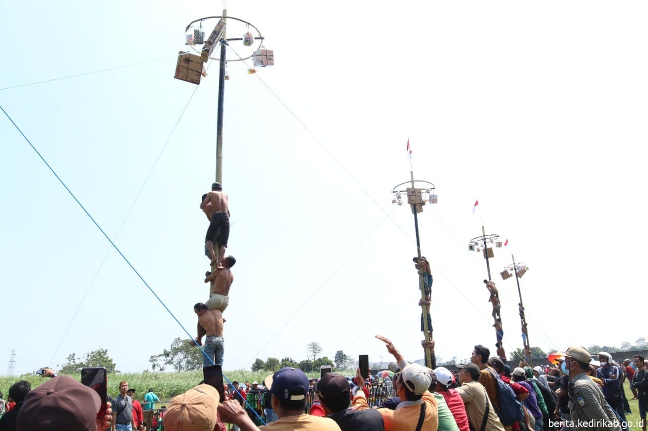 “Dalam perlombaan ini peserta panjat pinang merupakan masyarakat umum, sedang untuk tarik tambang dan balap karung peserta pelajar SMA/SMK,” kata Kepala DPMPD Kabupaten Kediri Agus Cahyono selaku koordinator perlombaan, Rabu (24/8/2022).