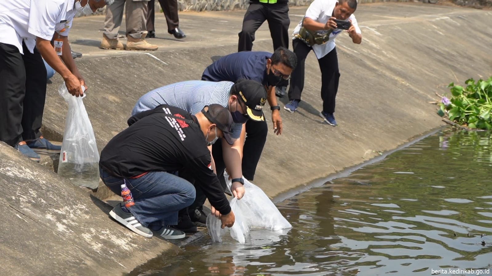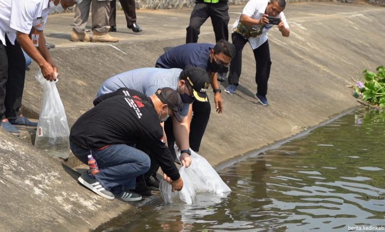 “Restocking pada hari ini pada intinya menjaga kelestarian ikan yang ada di Bendung Gerak Waru Turi ini,” kata Mas Dhito, Rabu (24/8/2022).