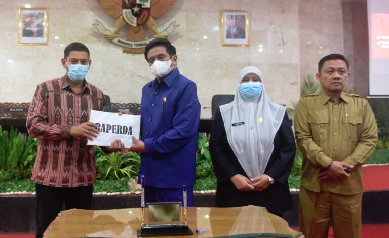 Persetujuan dan penetapan tersebut dilakukan di Ruang Sidang DPRD Kota Kediri, ditandai dengan penandatanganan berita acara persetujuan bersama antara Walikota Kediri Abdullah Abu Bakar dan Ketua DPRD Kota Kediri Gus Sunoto, Jumat (25/11/2022).