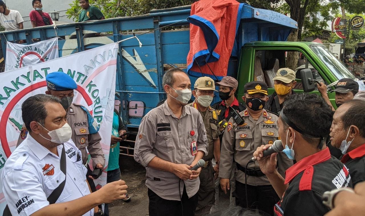 Setelah melakukan orasi dan sempat membakar ban hingga asap hitam membumbing tinggi di pinggir Jalan Mayor Bismo Kelurahan Semampir Kecamatan Kota Kediri.