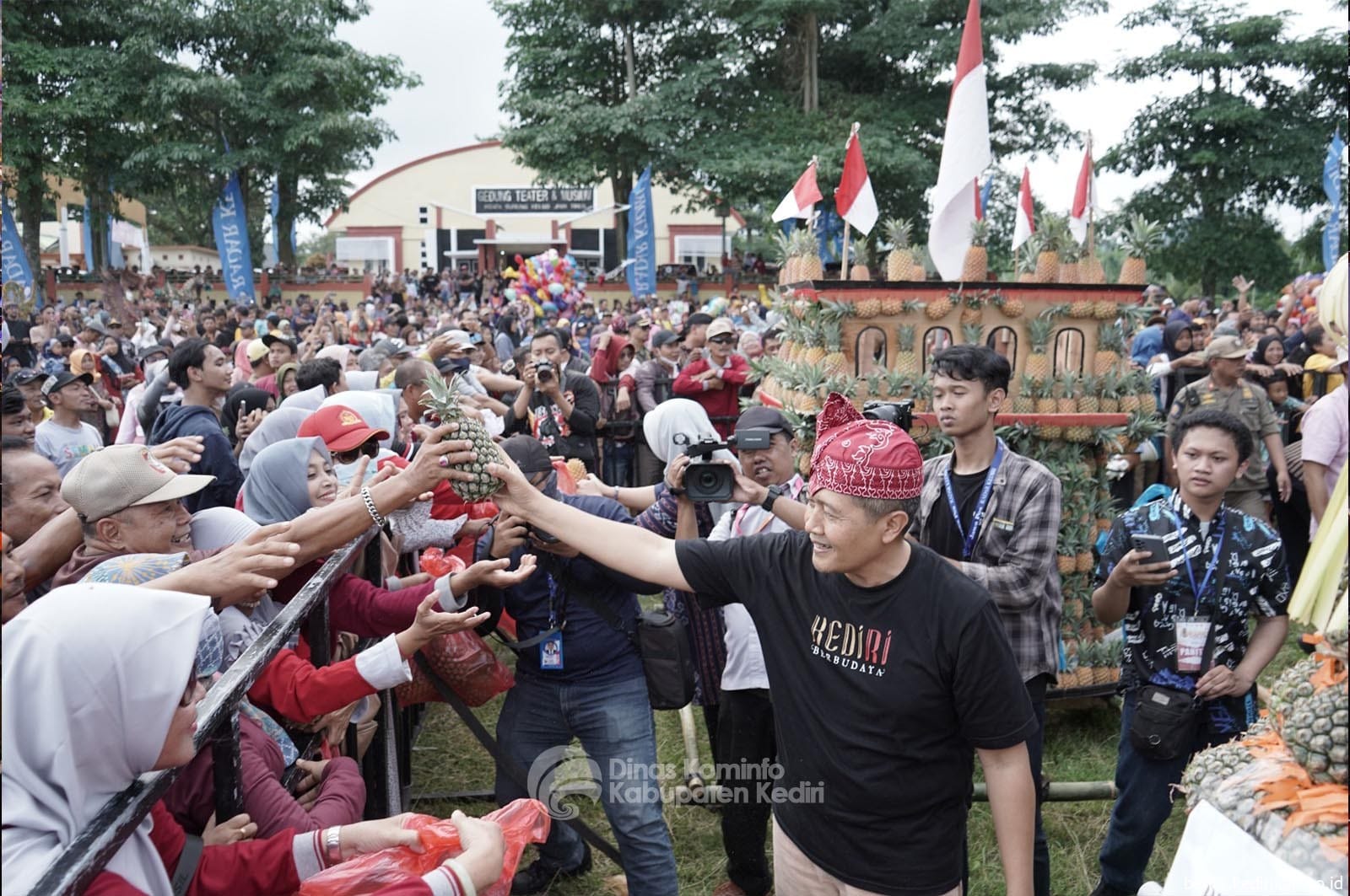 Sampai pada sesi acara grebek nanas, masyarakat sudah berkumpul menunggu untuk mendapatkan nanas secara gratis. Tak butuh waktu lama ribuan nanas habis dibawa pulang oleh pengunjung.(adv/kominfokabkdr/*/pty)
