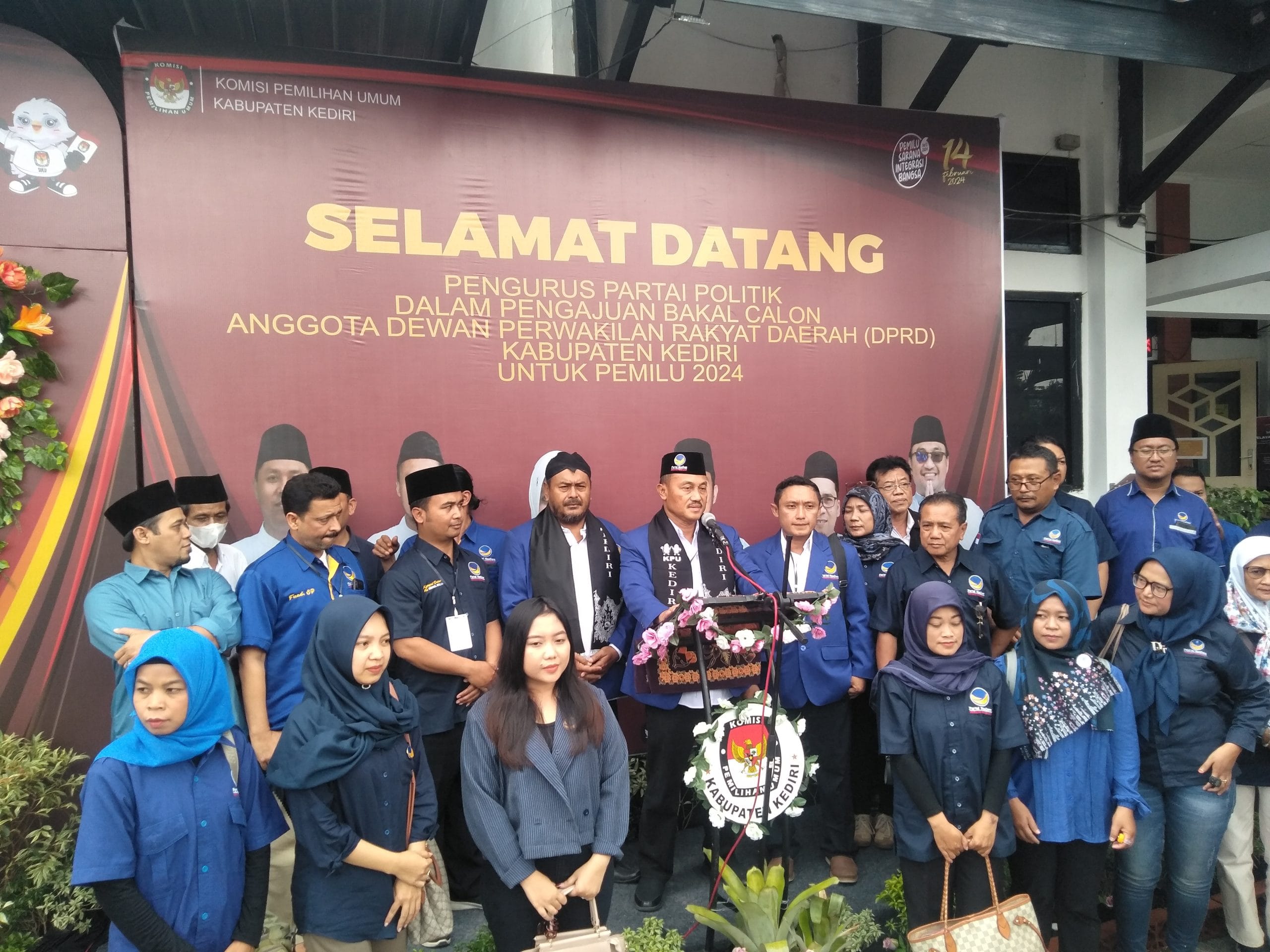 Kediri, GelarFakta – Partai Nasdem resmi mendaftarkan 50 Bakal Calon Legislatif (Bacaleg) mereka ke Kantor KPU Kabupaten Kediri, Kamis (11/5) siang.