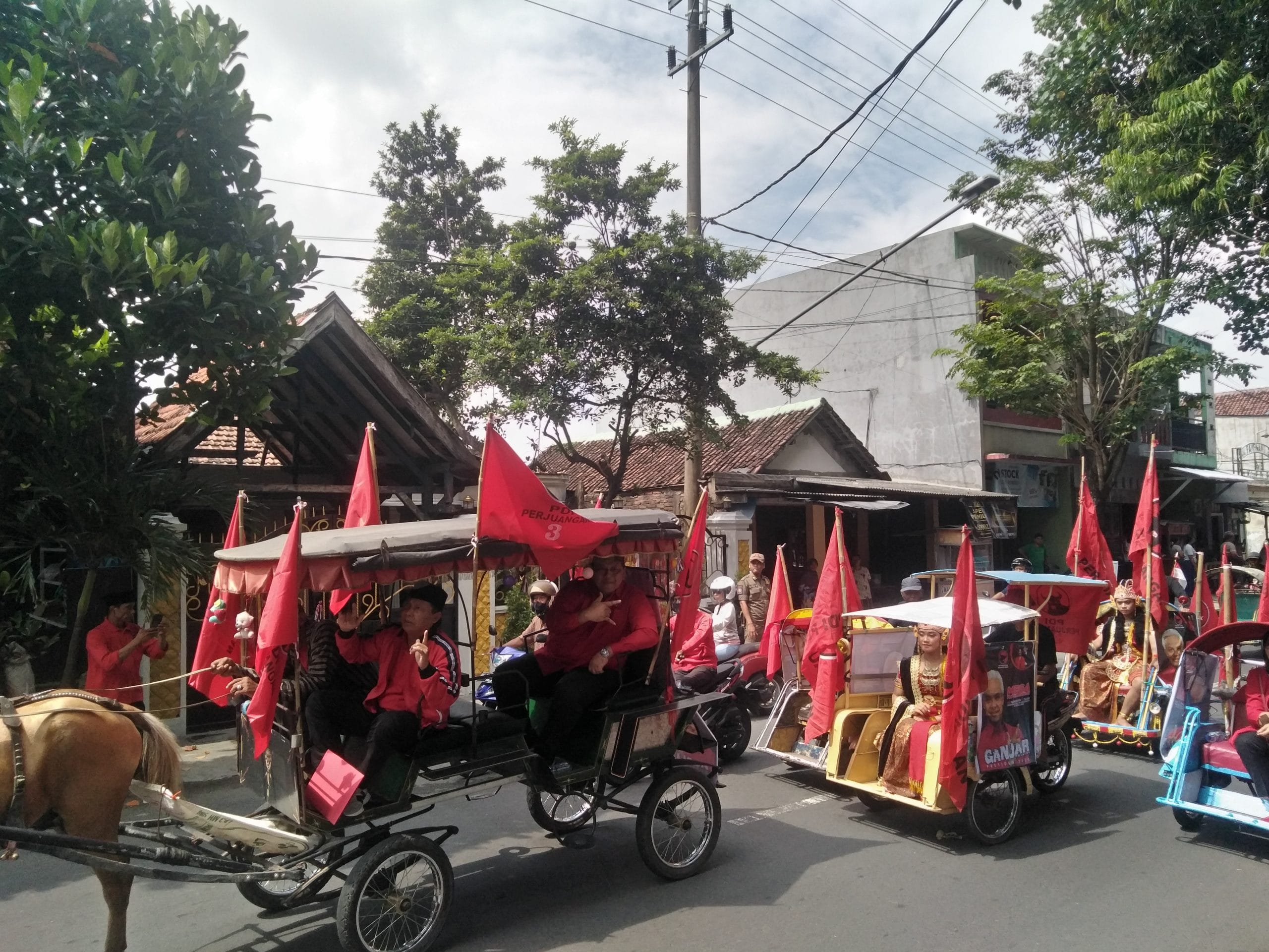 Kelima puluh Bacaleg tersebut datang menumpang becak dari kantor DPC PDI Perjuangan Kabupaten Kediri di Jalan Raya Kediri-Pare no. 61 Kecamatan Gurah.