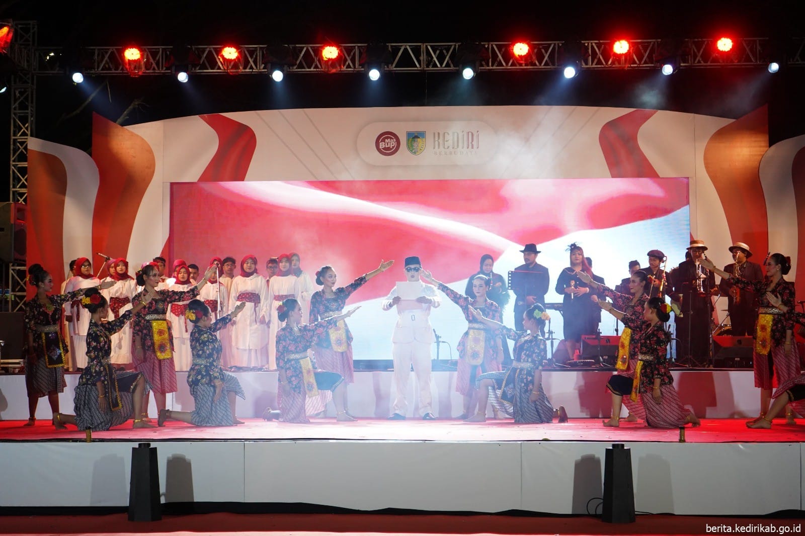 Plh. Sekretaris Daerah Ir. Adi Suwignyo, M.Si, saat membacakan sambutan Bupati Kediri, Hanindhito Himawan Pramana menyampaikan, dalam rangkaian kegiatan Bulan Bung Karno tahun ini kita menggelar Seni Budaya bersuka ria.
