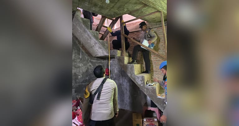 Keluarga kemudian meminta pertolongan kepada tetangga dan langsung menurunkan korban yang sudah dalam posisi tergantung menggunakan kain sarung warna hijau.
