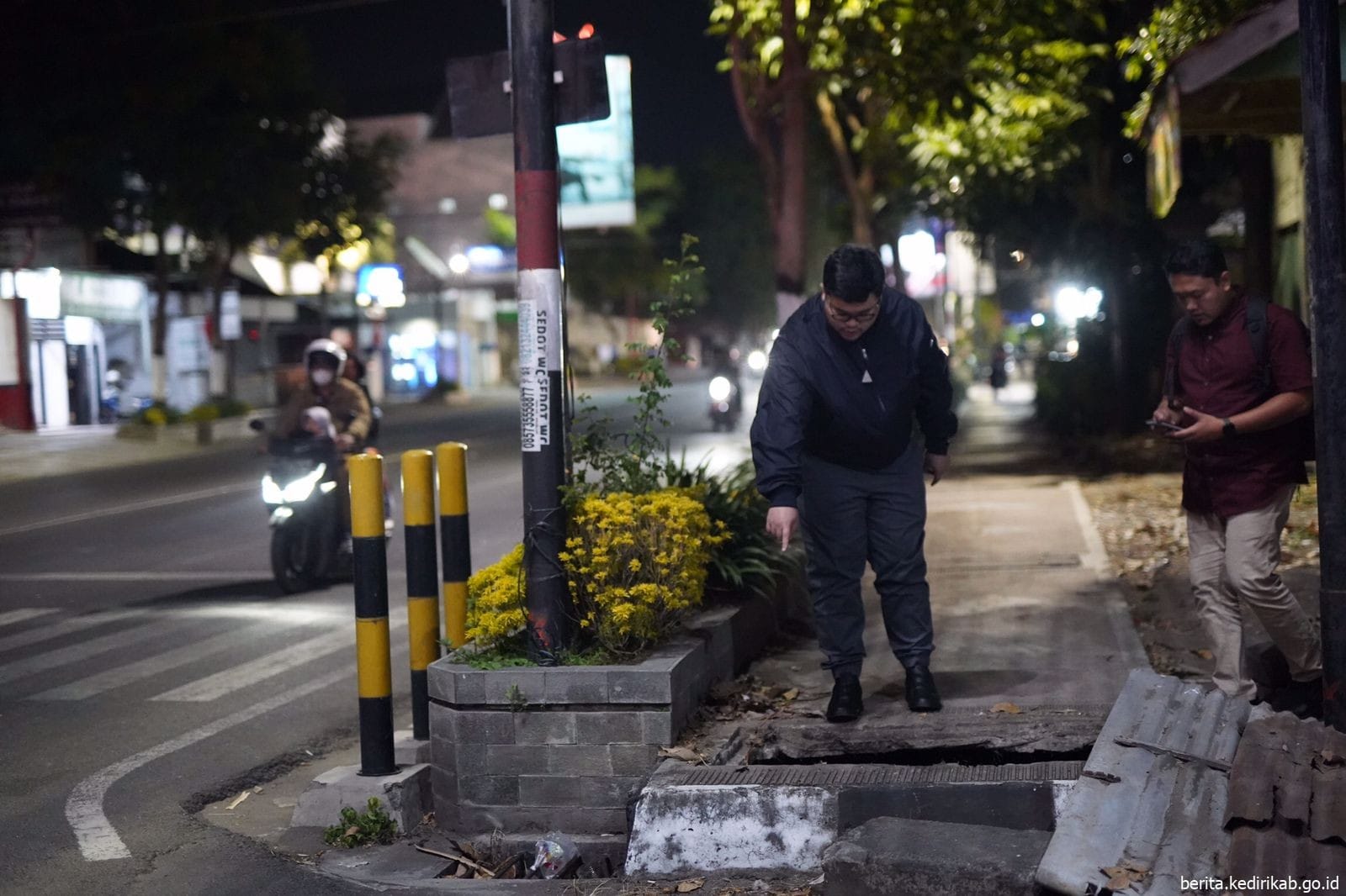 Atas temuan itu, Mas Dhito menginstruksikan supaya gorong-gorong sepanjang trotoar Jalan Soekarno-Hatta untuk ditelusuri. Bilamana masih ada penutup lain yang rusak untuk segera dibenahi.