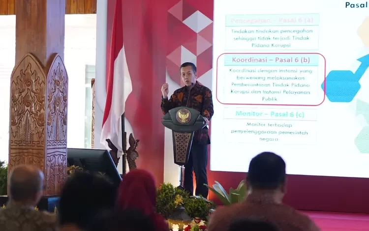 Target capaian itu disampaikan dalam sosialisasi anti korupsi dan monitoring evaluasi program pencegahan korupsi MCP pada Pemerintah Kabupaten Kediri di Pendopo Panjalu Jayati, Selasa (10/10/2023).