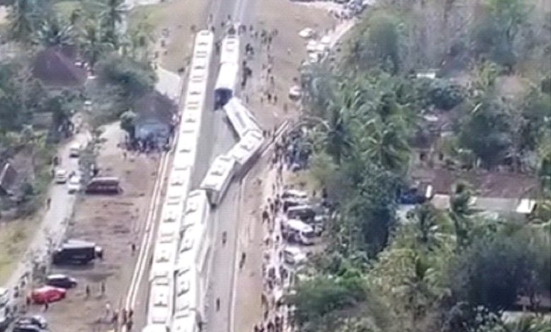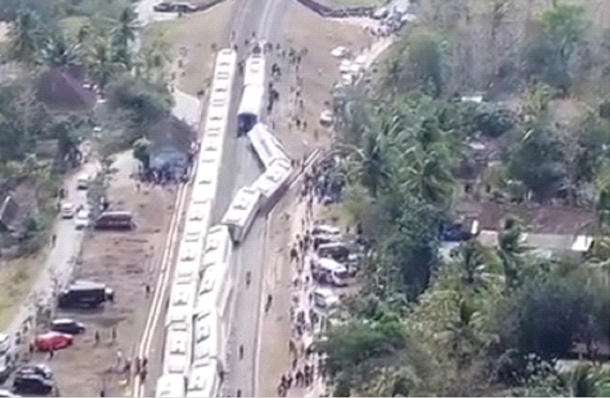 GELARFAKTA.COM – KA Argo Semeru relasi Surabaya Gubeng – Gambir mengalami anjlok, beberapa gerbong terguling keluar dari jalur rel.