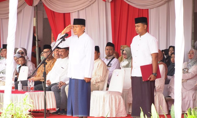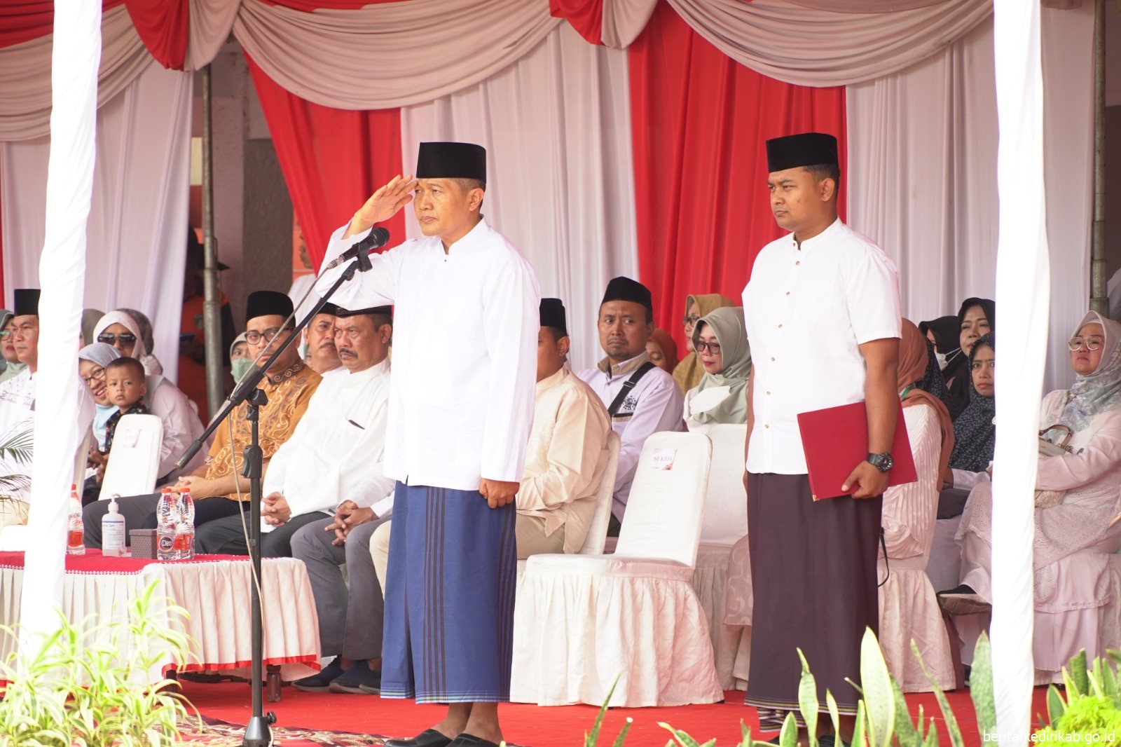 Sekretaris Daerah Kabupaten Kediri, M. Solikin mewakili Bupati Kediri, menjadi pembina pada Apel Akbar Hari Santri Nasional 2023 yang digelar di Stadion Canda Bhirawa, Kecamatan Pare, Kabupaten Kediri.