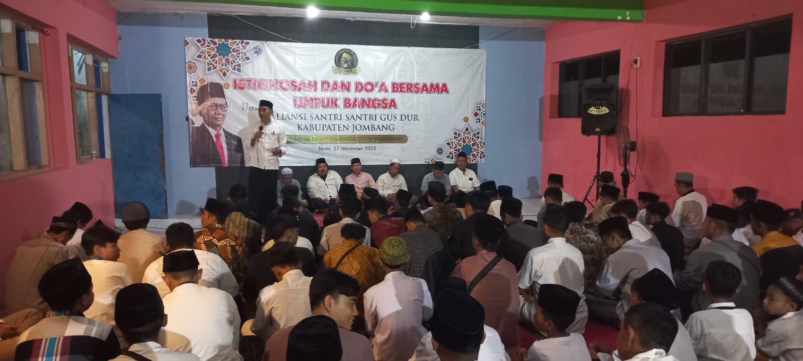 Jombang, GelarFakta – Aliansi Santri Gus Dur atau KH. Abdurrahman Wahid di Jombang mengadakan doa bersama dan istigasah untuk keselamatan bangsa di Pondok Pesantren Darul Ulum Mojosongo, Kecamatan Diwek Kabupaten Jombang, Senin (27/11/2023) malam.