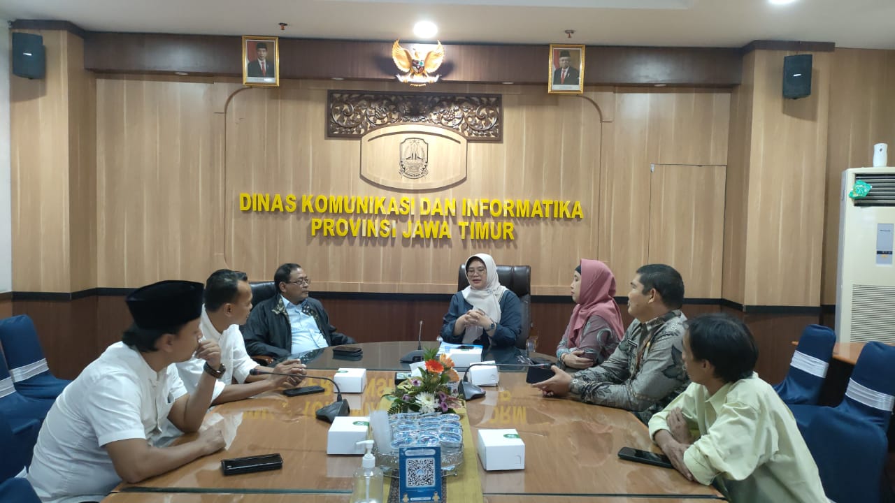 Kedatangan rombongan KI tersebut langsung disambut oleh Kepala Diskominfo Pemprov Jawa Timur Sherlita Ratna Dewi Agustin, Sekretaris Diskominfo Suharlina Kusumawardani, dan Sekretaris KI Provinsi Jawa Timur Putut Darmawan.