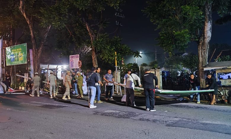 Jombang, GelarFakta – Memasuki masa tenang Pemilu 2024, tim gabungan dari Satpol PP (Satuan Polisi Pamong Praja), Dinas Perhubungan, Komisi Pemilihan Umum (KPU) dan Badan Pengawas Pemilu (Bawaslu), TNI, Polri dan instansi terkait lingkup Pemkab Jombang, melakukan pembersihan alat peraga kampanye (APK) Pemilu 2024, Sabtu (10/2/2024) sekitar pukul 23.48 WIB.