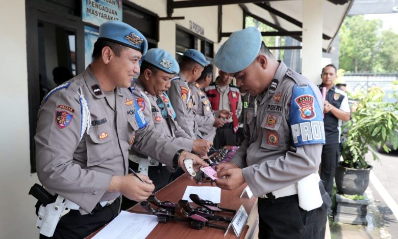 Tidak terkecuali kondisi dan kebersihan senpi yang dibawa anggota Polres Jombang beserta Polsek jajaran.