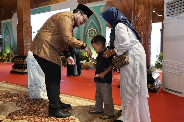 “Halo, namanya siapa,” tanya Mas Dhito kepada anak-anak yang ikut orang tuanya di acara Nglencer Ning Pendopo.