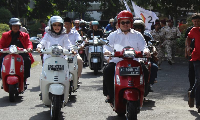 Naik Vespa, Mas Dhito dan Mbak Dewi Resmi Mendaftar sebagai Calon Bupati dan Wakil Bupati Kediri