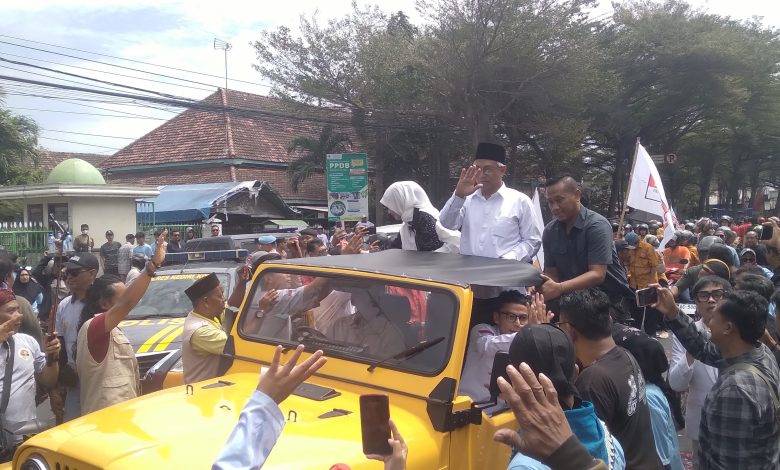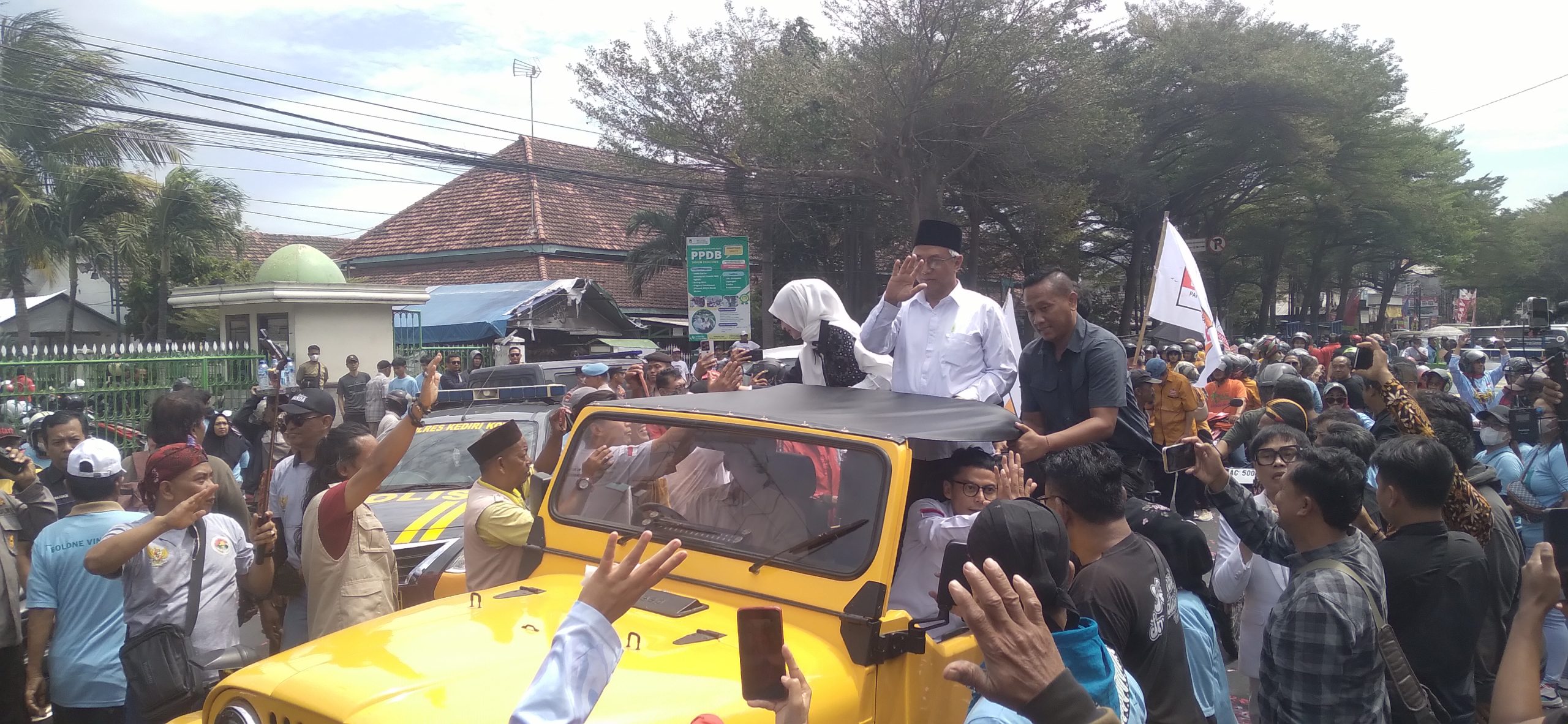 Pasangan ini diarak oleh ribuan pendukung yang mengiringi perjalanan mereka dari Alun-alun hingga Kantor KPU.
