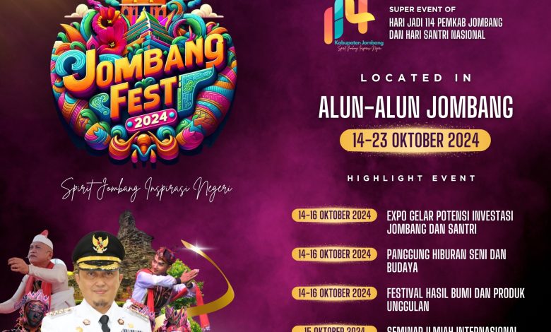 Jombang, GelarFakta – Dalam rangka menyambut Hari Jadi Kabupaten Jombang ke-114 dan Hari Santri Nasional, Pemerintah Kabupaten Jombang akan menggelar Jombang Fest 2024.