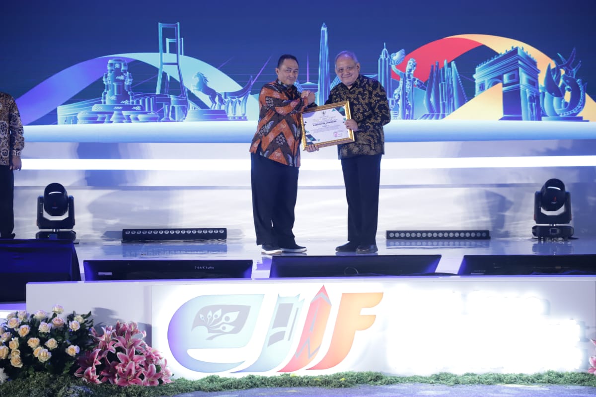 Penghargaan tersebut diterima langsung oleh Penjabat (Pj) Bupati Jombang, Dr. Drs. Teguh Narutomo, M.M., yang diserahkan oleh Direktur Pengembangan Potensi Daerah Kementerian Investasi/BKPM, Suhartono, dalam acara East Java Investment Forum (EJIF) 2024 di Ballroom Hotel Westin Surabaya, Kamis (24/10).