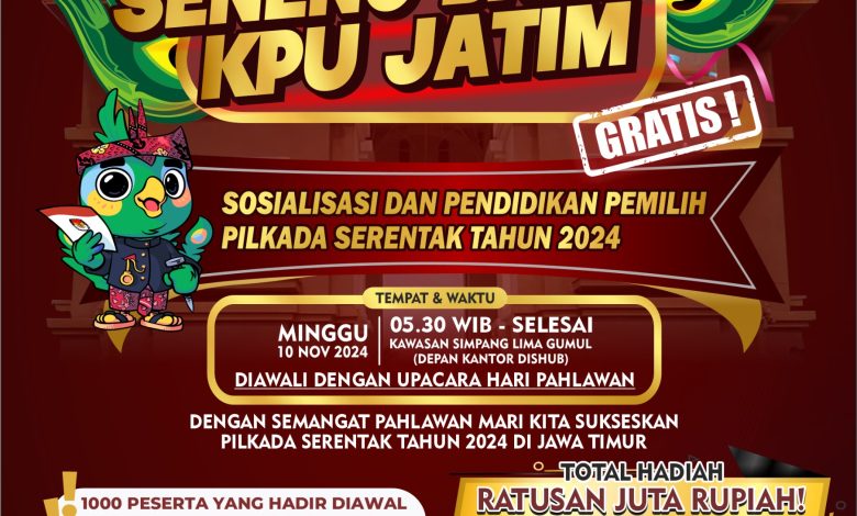 Kediri, GelarFakta – Komisi Pemilihan Umum (KPU) Provinsi Jawa Timur mengajak masyarakat untuk berpartisipasi dalam acara Jalan Sehat Seneng Bareng KPU Jatim.