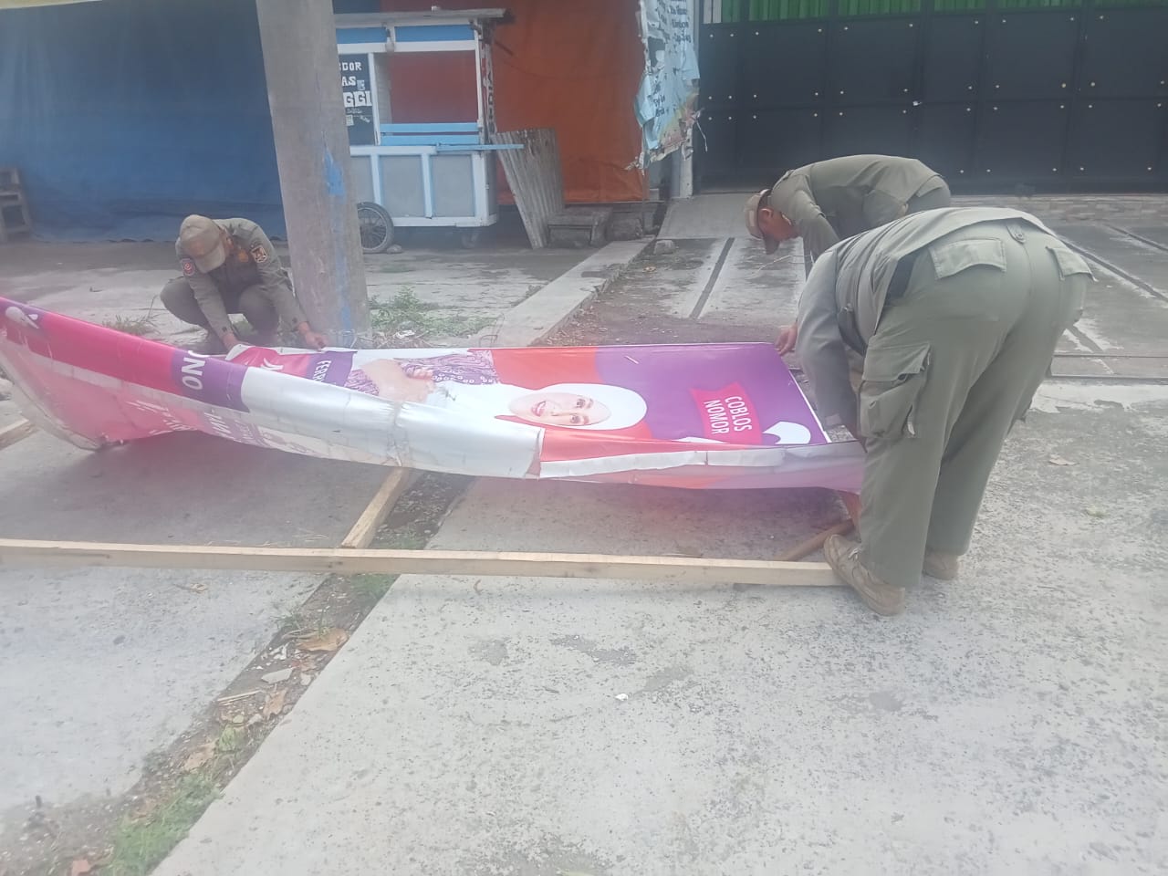 Agus Setiono, Koordinator Tim Regu Tiga Satpol PP Kota Kediri, menjelaskan bahwa sejak Sabtu (16/11), timnya telah mencabut empat APK yang dianggap melanggar aturan karena kondisi yang tidak layak.