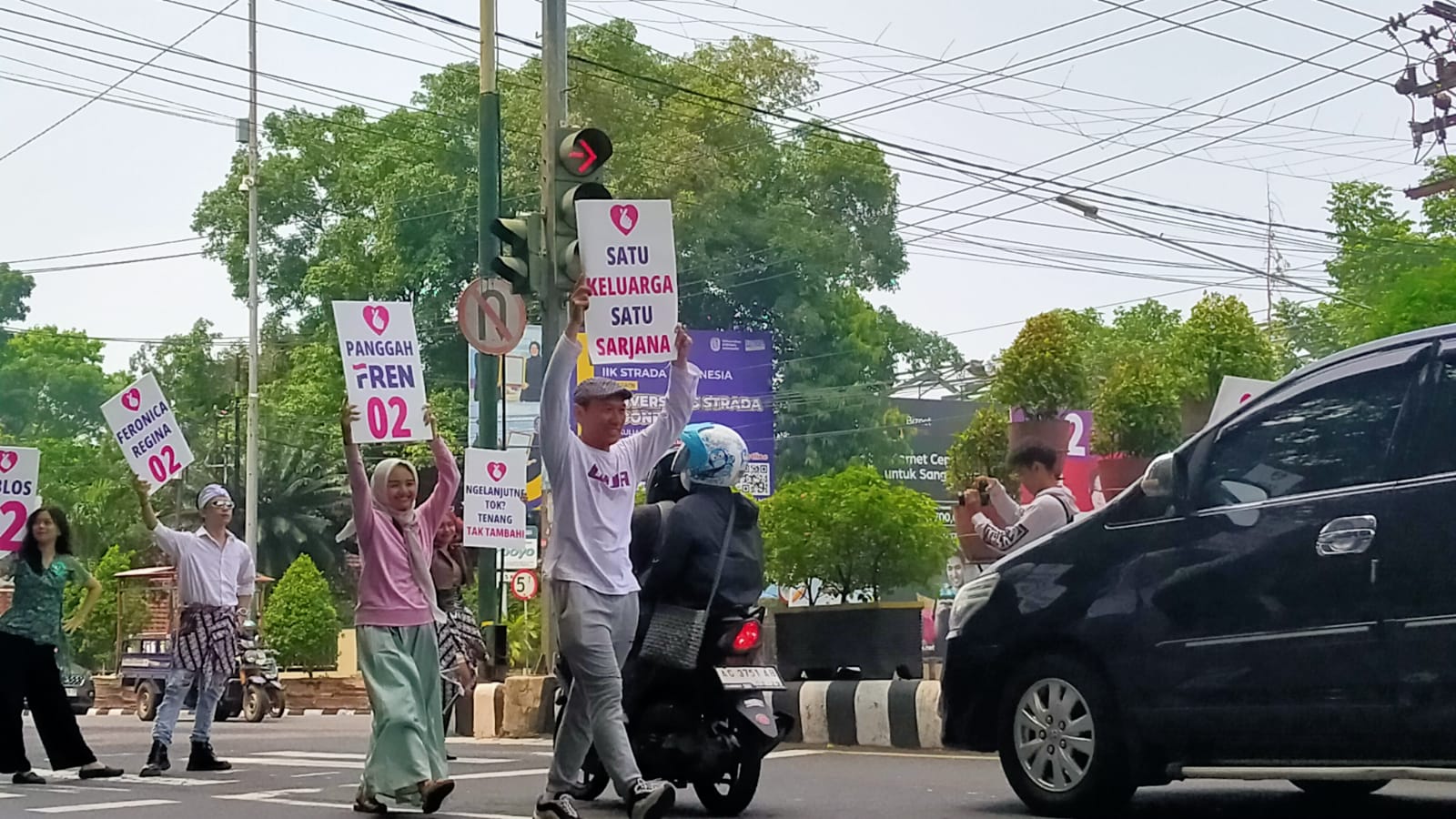 Aksi ini menjadi daya tarik bagi masyarakat, terutama di area pertigaan depan Stadion Brawijaya, di mana sejumlah peraga membawa poster berisi program unggulan pasangan FREN. Setiap kali lampu merah menyala, para peraga dengan kostum kreatif tampil membawa pesan ajakan untuk tidak golput, sekaligus memberikan edukasi kepada pengendara.