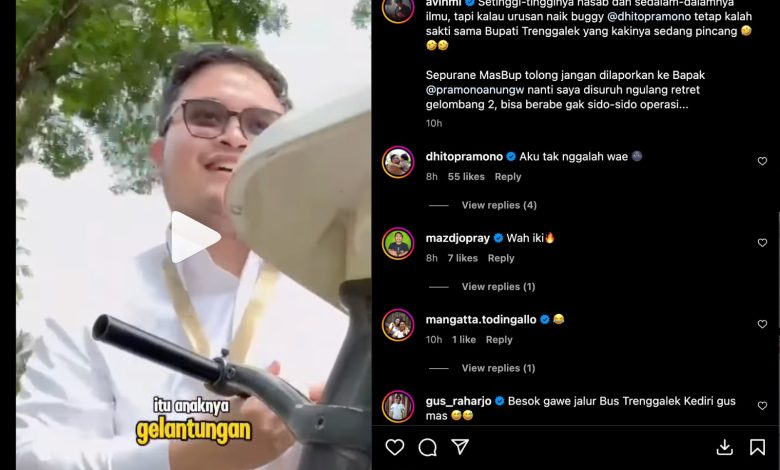 “Laporan kepada Bapak Gubernur DKI (Pramono Anung), saya Bupati Trenggalek memohon maaf karena selama retreat, saya yang duduk kalau naik buggy itu, anaknya gelantungan,” kata Gus Ipin, Selasa (25/2/2025).