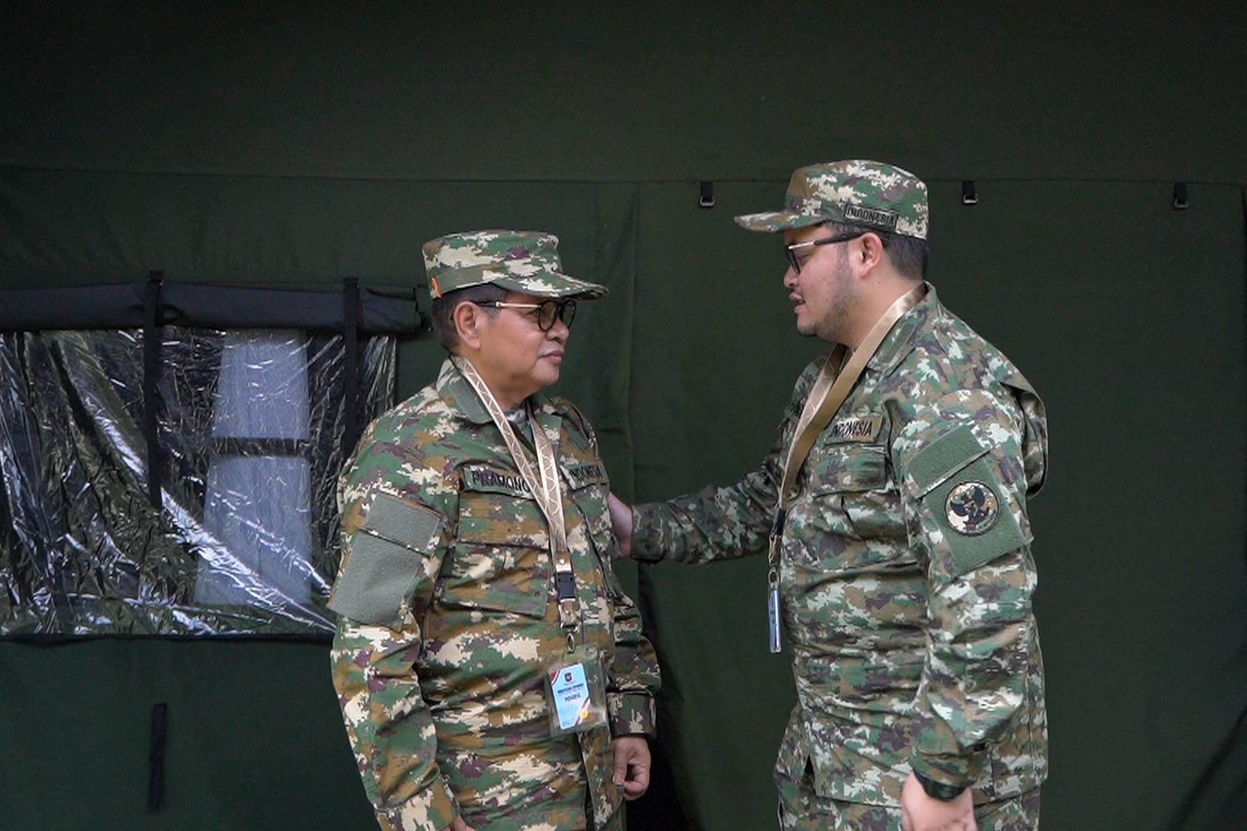 Sama-sama mengenakan pakaian komponen cadangan (komcad) dan sepatu PDL, keduanya berbincang hangat di tengah padatnya agenda retret.