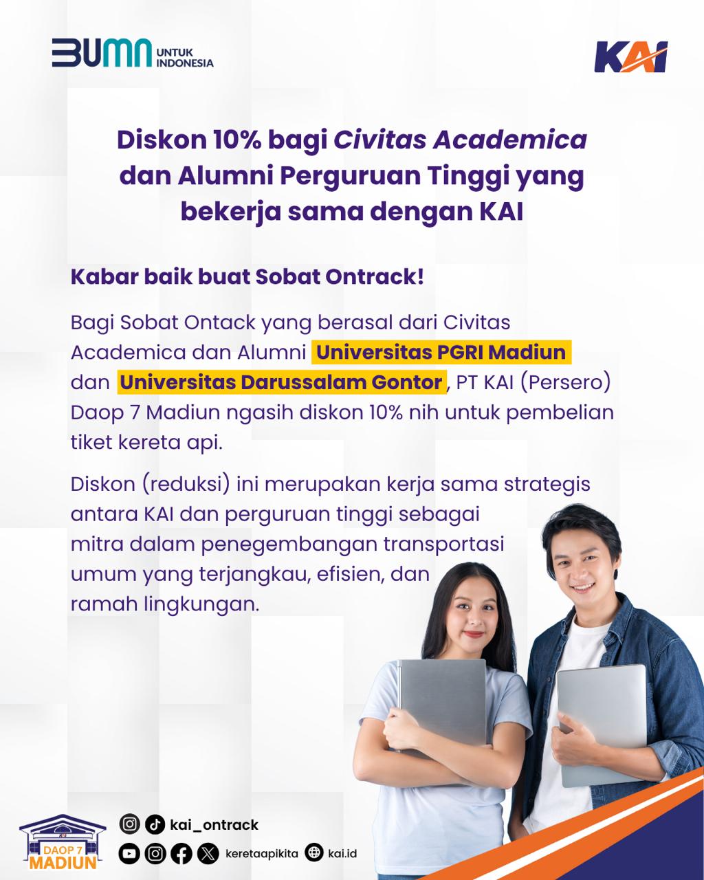 KAI Daop 7 Madiun Berikan Diskon Tiket KA bagi Civitas Academica dan Alumni Dua Perguruan Tinggi