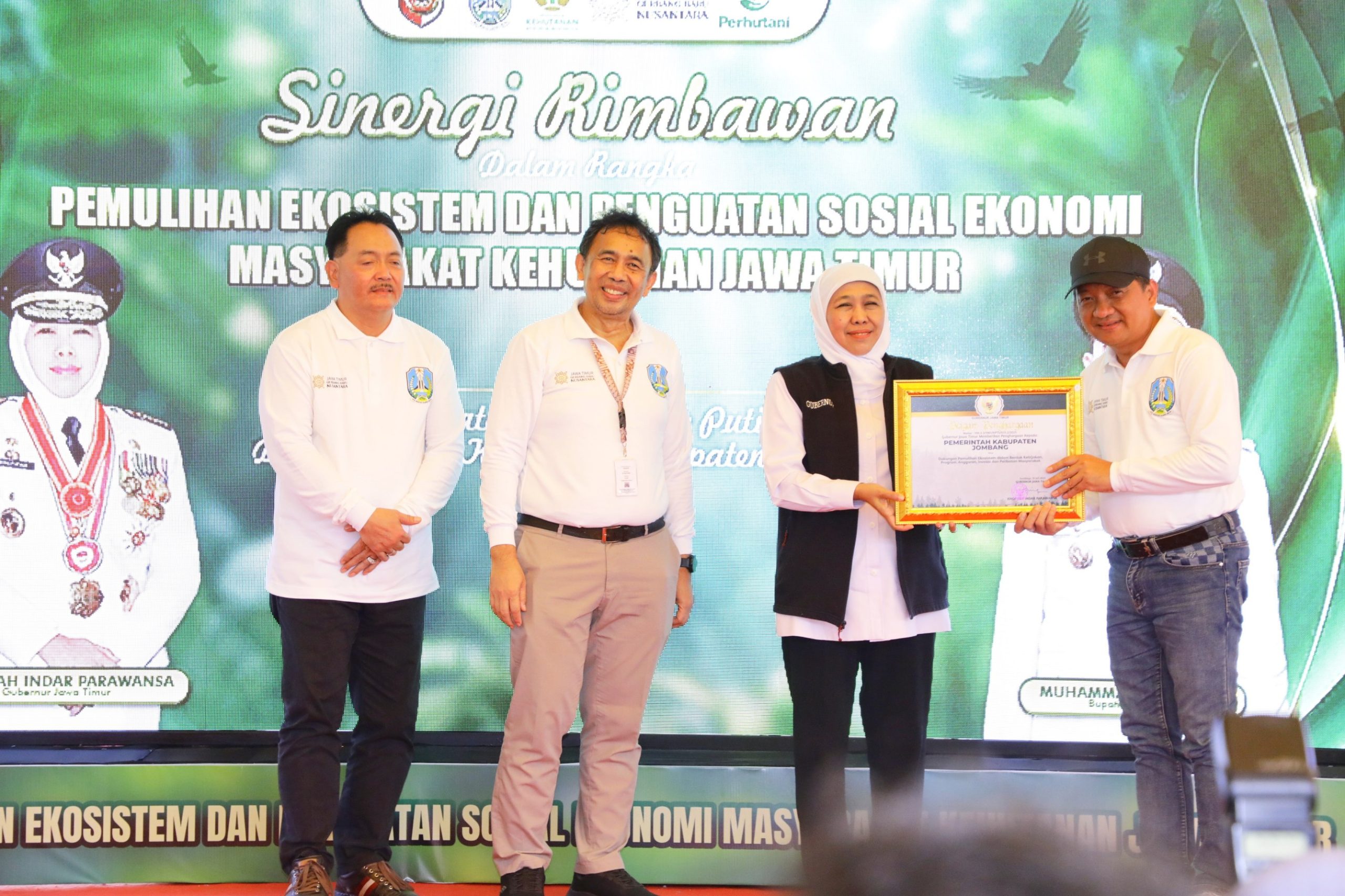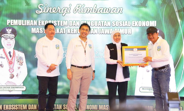 Jombang, gelarfakta.com – Pemerintah Kabupaten Jombang kembali mencatatkan prestasi dalam pelestarian lingkungan hidup. Pada Selasa (22/7/2025), Pemkab Jombang menerima penghargaan kategori Pemulihan Ekosistem yang diserahkan langsung oleh Gubernur Jawa Timur, Khofifah Indar Parawansa, dalam acara “Sinergi Rimbawan dalam Rangka Pemulihan Ekosistem dan Peningkatan Sosial Ekonomi Masyarakat Kehutanan Jawa Timur” di Bukit Kayoe Putih, Desa Kupang, Kecamatan Jetis, Kabupaten Mojokerto.