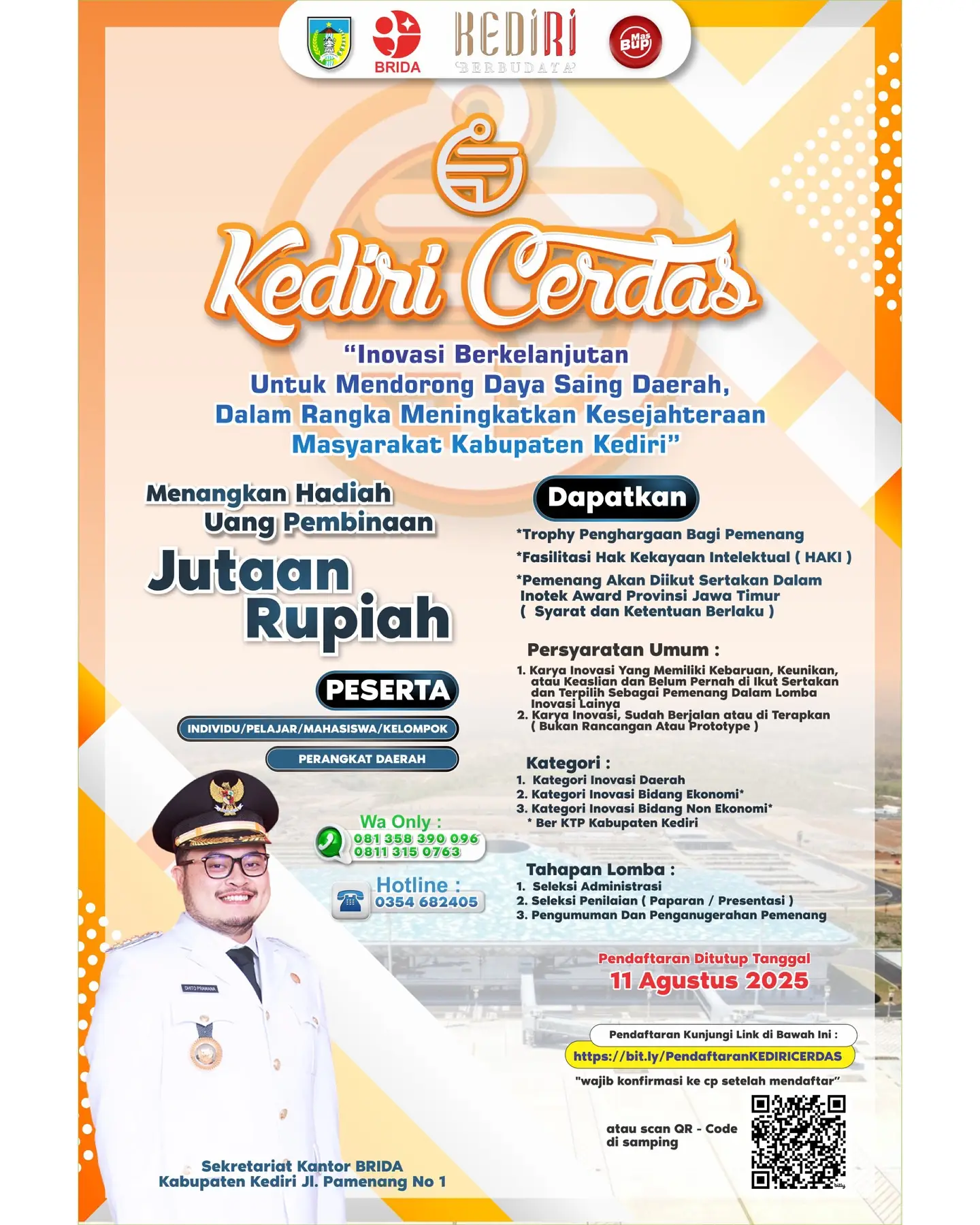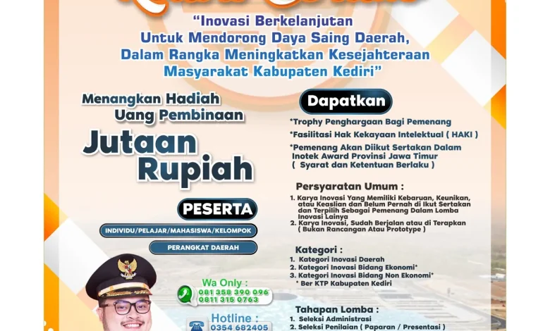 BRIDA Kabupaten Kediri Gelar Lomba Inovasi “Kediri Cerdas 2025”, Hadiah Jutaan Rupiah dan Peluang Masuk Inotek Award Jatim