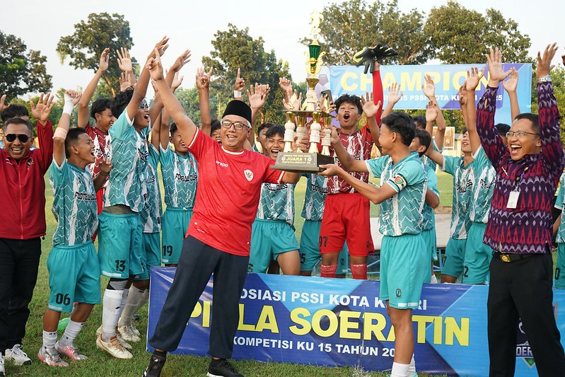 Kediri, GelarFakta – Wakil Wali Kota Kediri Qowimuddin Thoha menyerahkan piala kepada para juara Soeratin Cup U-15 yang digelar di Ngronggo Sport Art Center, Kamis (5/6/2025). Kompetisi sepak bola usia dini ini berlangsung sejak 24 Mei hingga 5 Juni 2025 dan terselenggara berkat kolaborasi Asosiasi PSSI Kota Kediri serta dukungan penuh para orang tua yang terus mendorong pengembangan bakat putra-putrinya.