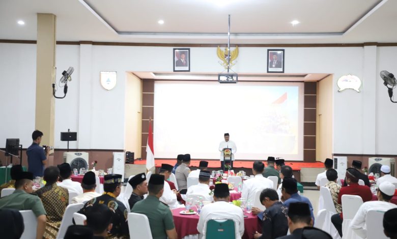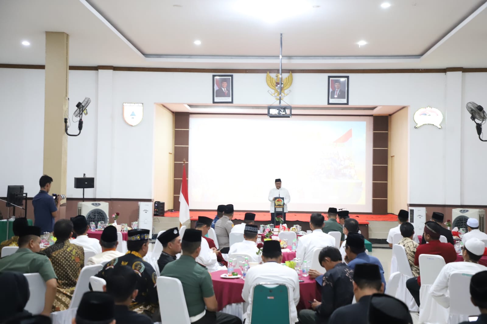 Bupati Jombang, Warsubi, hadir bersama Wakil Bupati Salmanudin, jajaran Forum Komunikasi Pimpinan Daerah (Forkopimda), Sekdakab Jombang, Kepala Kemenag Kabupaten Jombang, pimpinan pondok pesantren, tokoh lintas agama, tokoh masyarakat, serta keluarga besar Kodim 0814 Jombang.