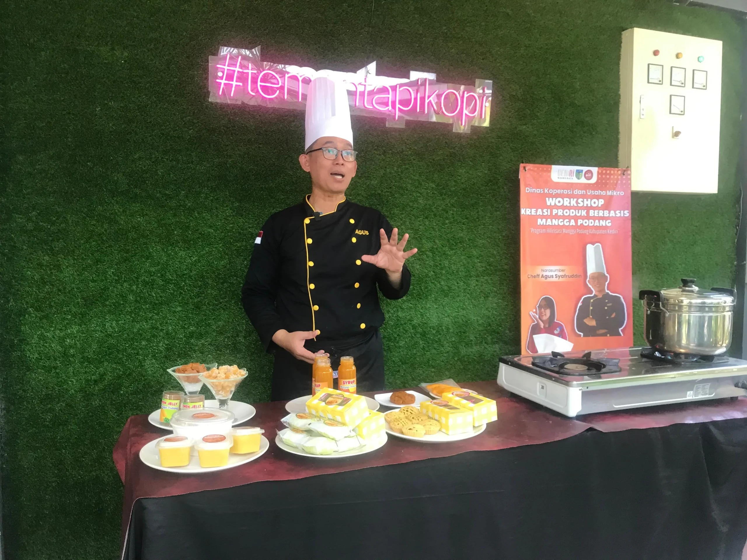 Workshop seri ke-3 ini menjadi bagian dari Program Hilirisasi Mangga Podang Kabupaten Kediri yang bertujuan mendorong pelaku usaha mikro agar mampu mengembangkan produk inovatif berbasis potensi lokal. Kegiatan dipandu oleh Yohana Meilasari dan menghadirkan Chef Agus Syafruddin sebagai narasumber utama yang memberikan inspirasi sekaligus demonstrasi pengolahan mangga podang menjadi berbagai produk bernilai ekonomi tinggi.