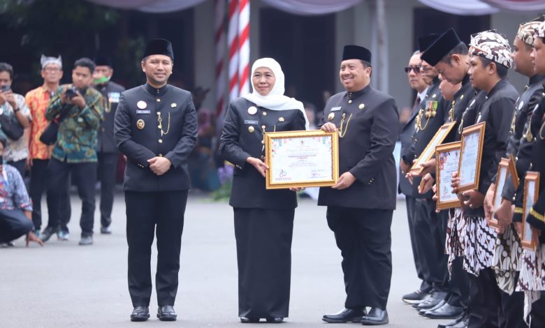 Jombang, gelarfakta.com – Pemerintah Kabupaten Jombang kembali mencatatkan prestasi membanggakan pada peringatan Hari Jadi ke-80 Provinsi Jawa Timur. Dalam upacara yang berlangsung khidmat di Gedung Negara Grahadi, Surabaya, Sabtu (12/10/2025), Kabupaten Jombang berhasil meraih Juara III Kategori Pemerintah Kabupaten untuk Penyelenggaraan Nama Rupabumi Tingkat Provinsi Jawa Timur Tahun 2025.