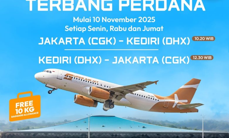 – Jakarta (CGK) – Kediri (DHX) pukul 10.20 WIB