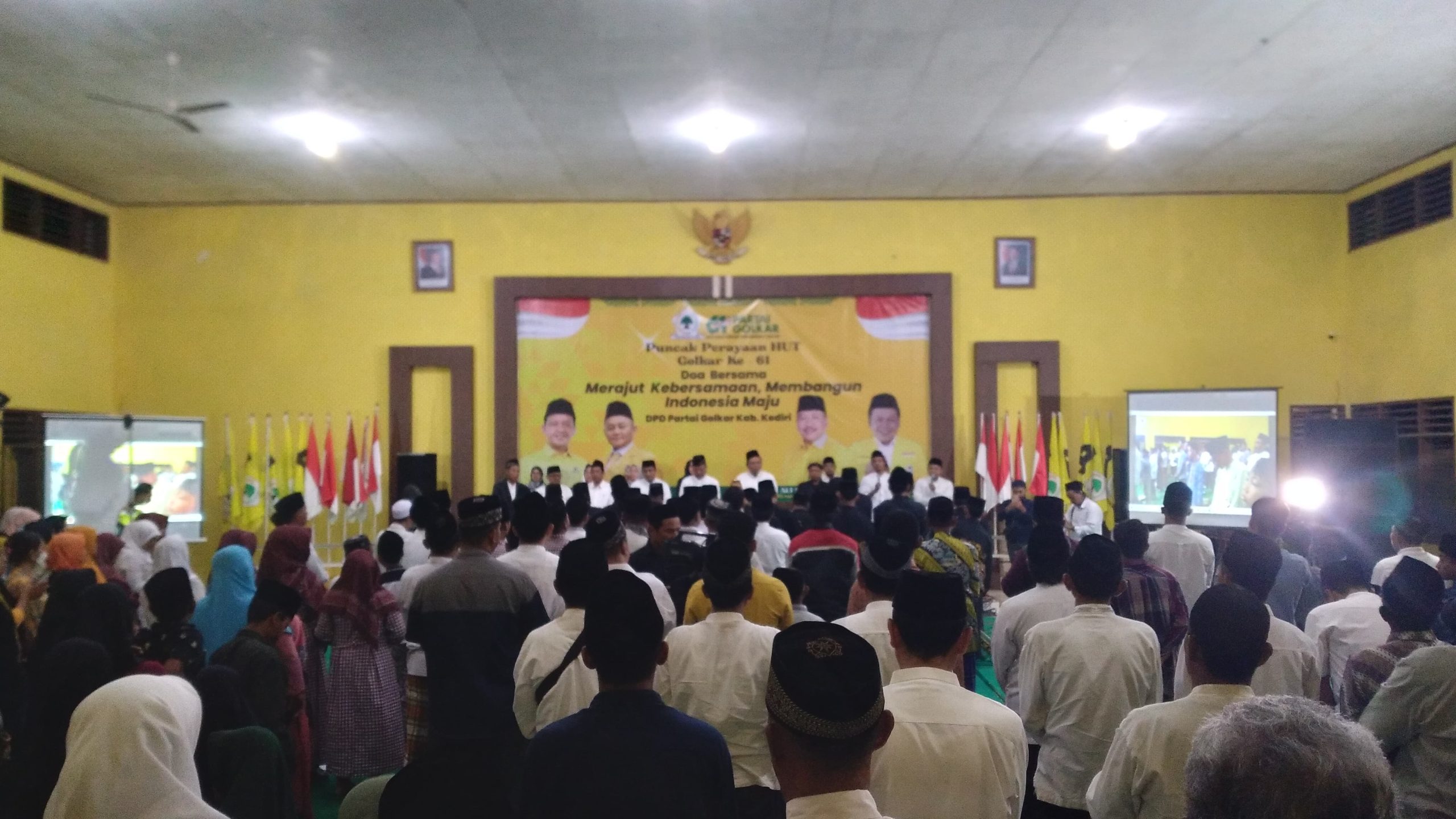 Kediri, gelarfakta.com – DPD Partai Golkar Kabupaten Kediri menggelar doa bersama sebagai puncak peringatan Hari Ulang Tahun (HUT) ke-61 Partai Golkar, Jumat (5/12/25). Acara digelar secara khidmat sebagai wujud kepedulian partai terhadap kondisi bangsa yang tengah menghadapi berbagai tantangan, mulai bencana alam hingga dinamika politik nasional.