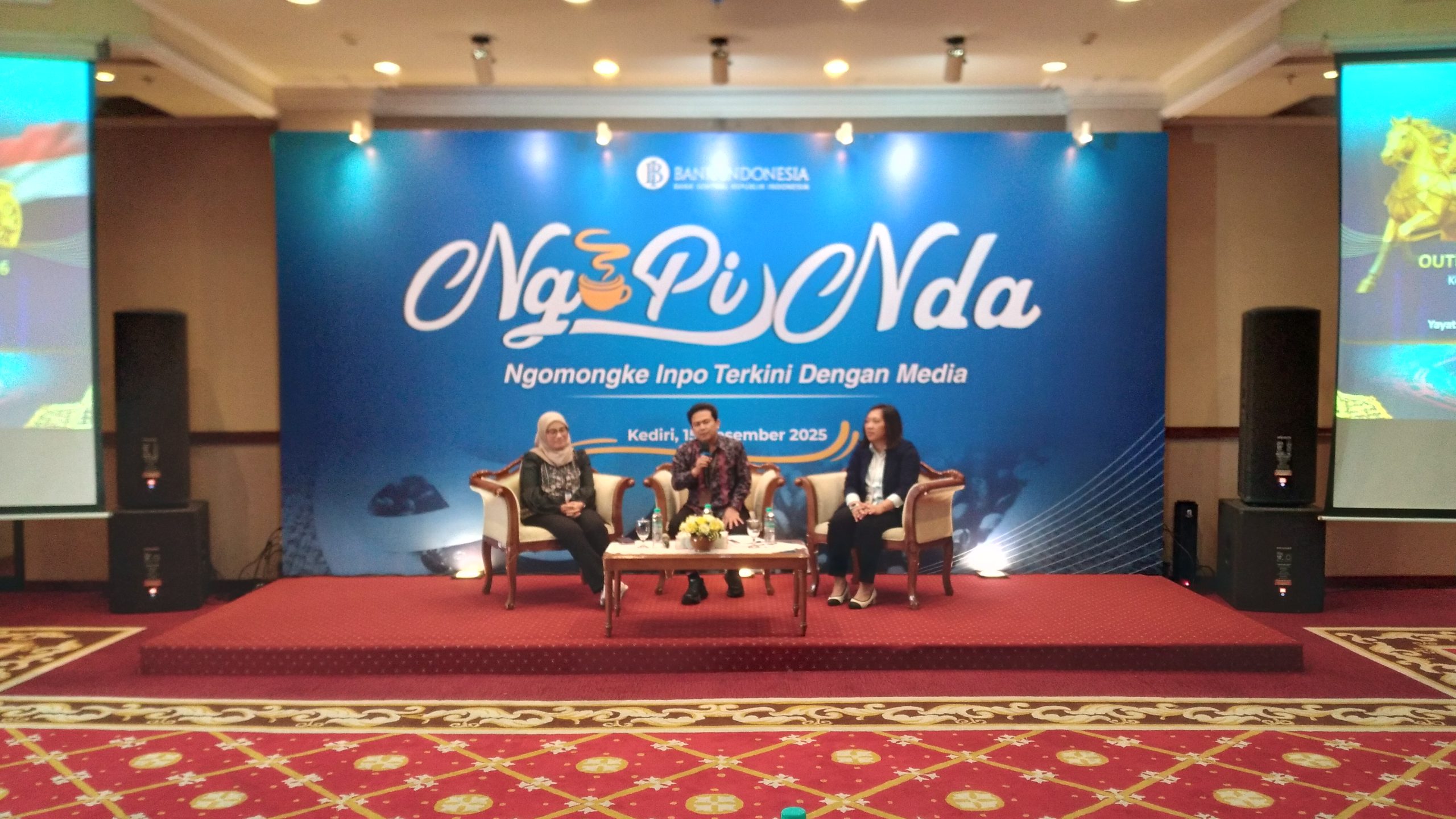Kediri, gelarfakta.com — Kantor Perwakilan Bank Indonesia (KPwBI) Kediri menggelar kegiatan Ngopi Nda (Ngomongke Inpo Terkini Dengan Media) bersama puluhan wartawan Kediri Raya, Senin (15/12/2025) siang. Kegiatan yang berlangsung di Kantor KPwBI Kediri tersebut dipimpin langsung Kepala KPwBI Kediri, Yayat Cadarajat, dengan konsep diskusi santai namun substansial.