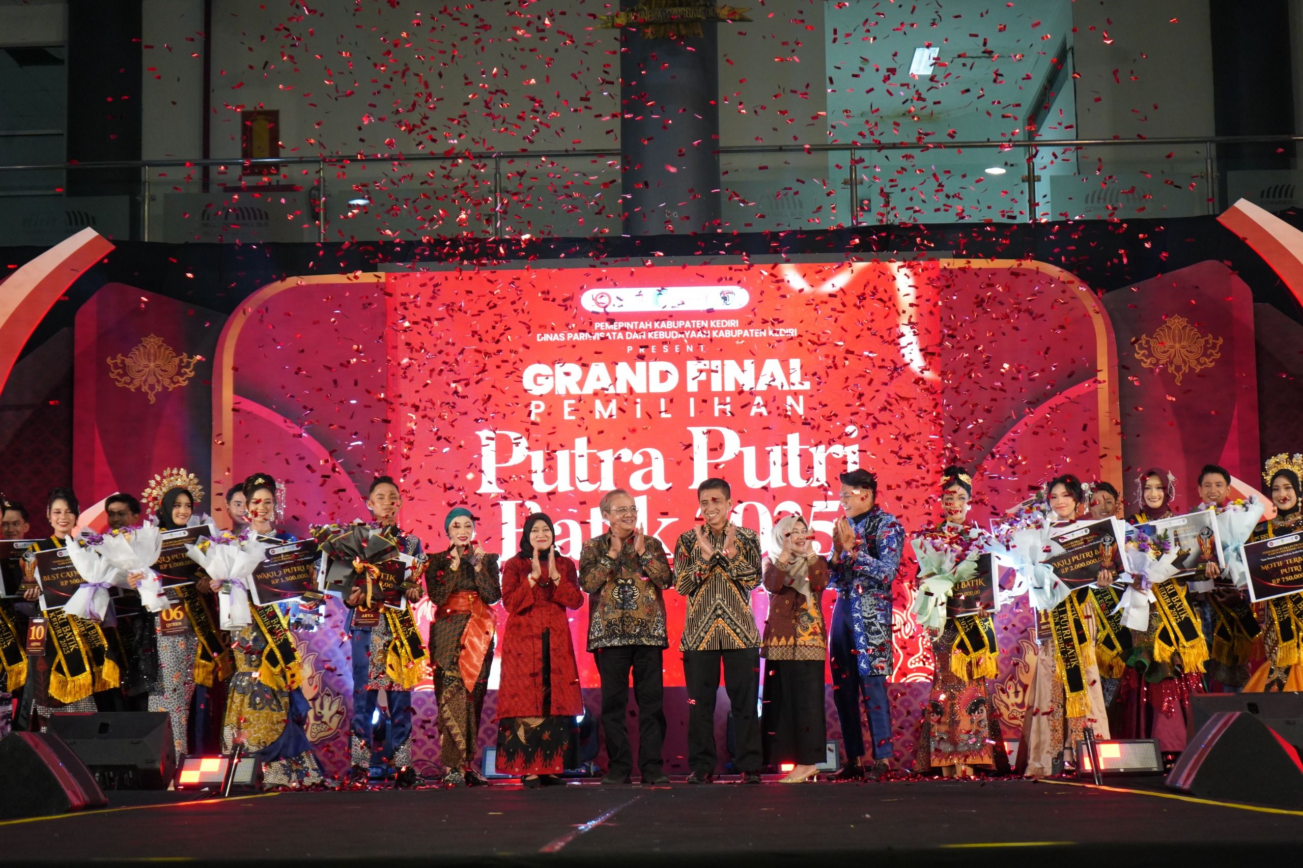Kediri, gelarfakta.com – Pemerintah Kabupaten Kediri melalui Dinas Pariwisata dan Kebudayaan menggelar grand final Pemilihan Putra Putri Batik Kabupaten Kediri Tahun 2025 di Convention Hall Simpang Lima Gumul (SLG), Sabtu (20/12) malam.