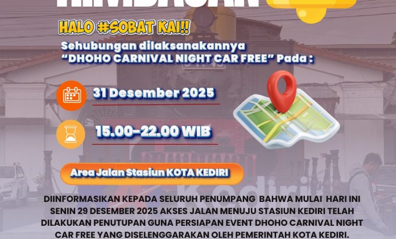 Kediri, gelarfakta.com – PT Kereta Api Indonesia (Persero) Daerah Operasi 7 Madiun mengimbau para pelanggan kereta api yang akan berangkat dari Stasiun Kediri pada Rabu malam, 31 Desember 2025, untuk datang lebih awal ke stasiun, minimal satu jam sebelum jadwal keberangkatan.