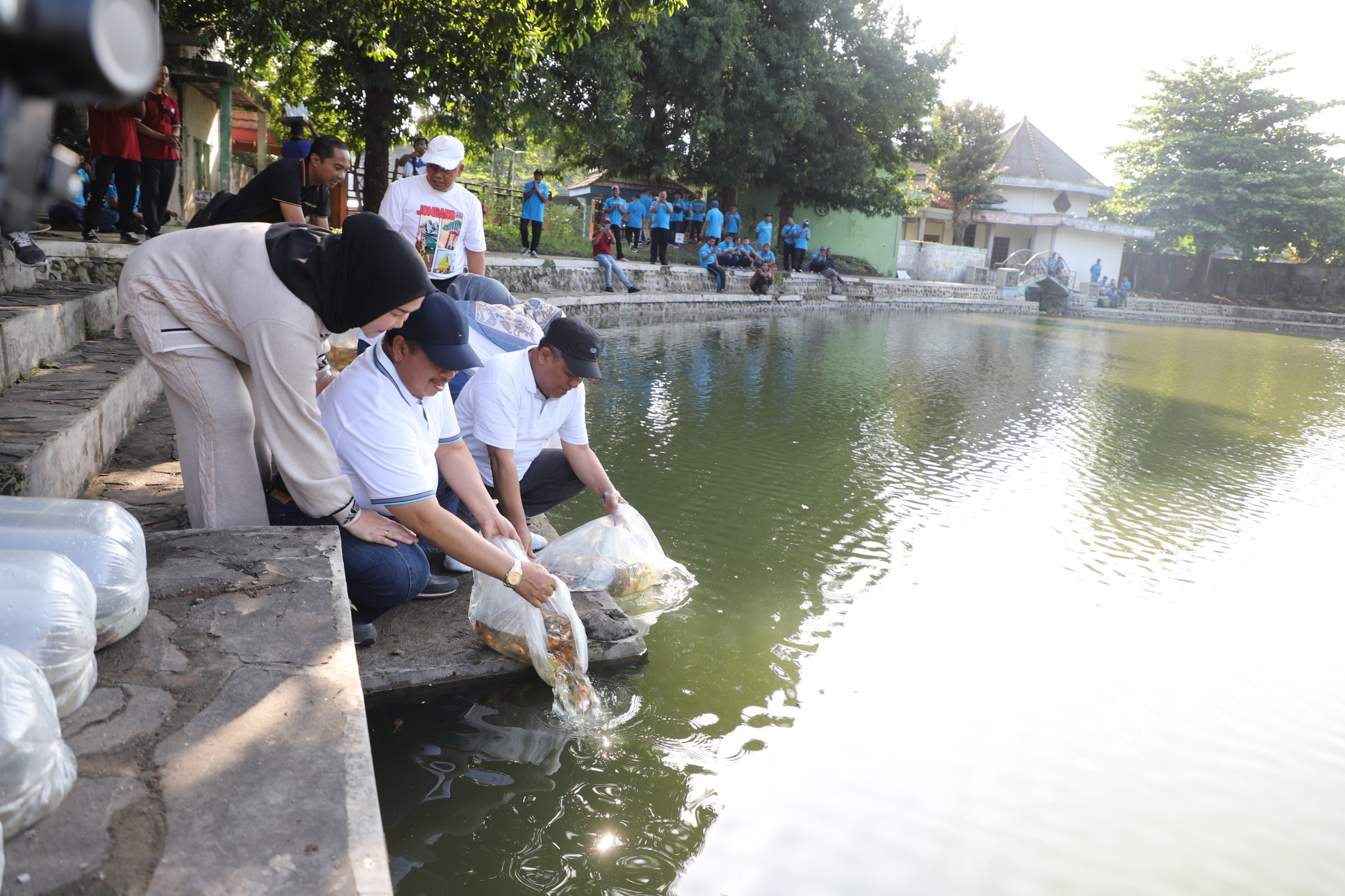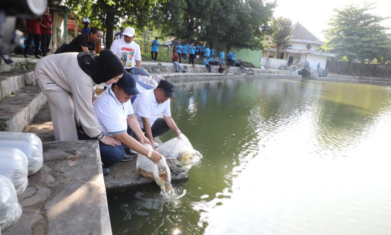 Agenda kemudian berlanjut ke kawasan Taman Tirta Wisata Keplaksari. Sebagai simbol pemulihan ekosistem, Dinas Ketahanan Pangan dan Perikanan Kabupaten Jombang menebar sebanyak 2.000 ekor benih ikan nila dan tombro ke perairan taman. Aksi tersebut menjadi penanda harapan agar ekosistem taman kembali hidup dan produktif.