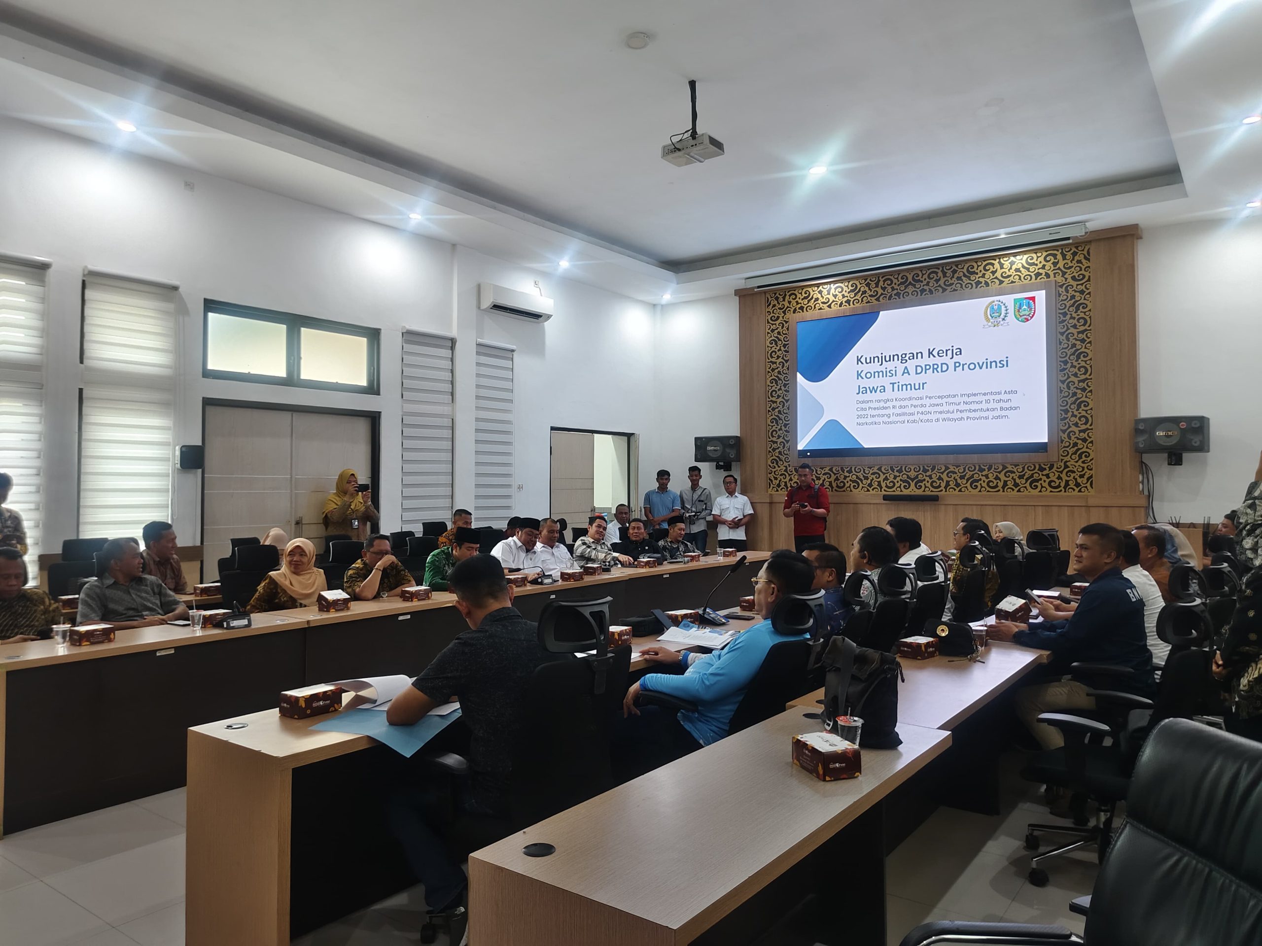 Kunjungan kerja ini dipimpin Ketua Komisi A DPRD Jawa Timur, Dedi Irwansa, S.Pd., bersama jajaran wakil ketua dan anggota. Agenda utama pertemuan tersebut adalah koordinasi percepatan implementasi Peraturan Daerah Provinsi Jawa Timur Nomor 10 Tahun 2022 tentang Fasilitasi Pencegahan dan Pemberantasan Penyalahgunaan serta Peredaran Gelap Narkotika (P4GN), melalui pembentukan Badan Narkotika Nasional Kabupaten (BNNK) Jombang.