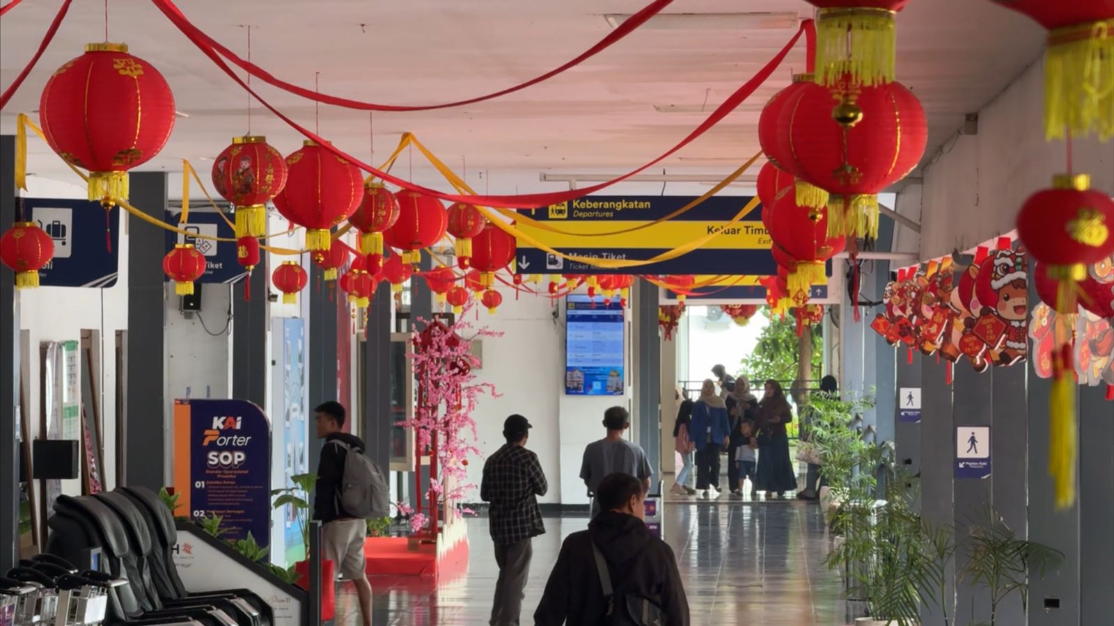 Keindahan stasiun semakin lengkap dengan berbagai ornamen pelengkap, seperti puluhan lampion merah yang menghiasi langit-langit stasiun, lampu hias tematik yang memberikan kesan hangat di malam hari, serta pernak-pernik dan aksesori khas Imlek yang tersebar di ruang tunggu.