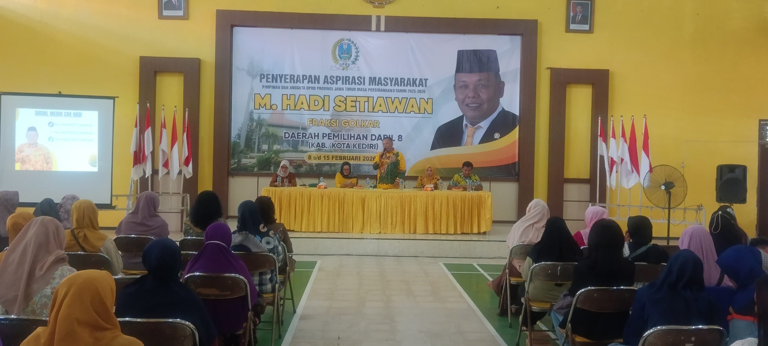 Kediri, gelarfakta.com – Kaum ibu menyampaikan berbagai aspirasi terkait penguatan usaha mikro, kecil, dan menengah (UMKM) serta kebutuhan pendidikan dalam kegiatan reses Anggota DPRD Provinsi Jawa Timur, M. Hadi Setiawan, yang digelar di Kabupaten Kediri, Minggu (8/2/2026).