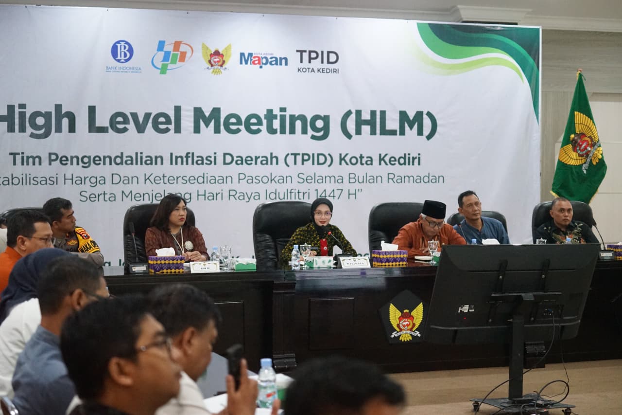 Kediri, gelarfakta.com — Wali Kota Vinanda Prameswati memimpin High Level Meeting (HLM) Tim Pengendali Inflasi Daerah (TPID) di Kota Kediri, Jumat (13/2/2026). Pertemuan tersebut mengusung tema “Stabilisasi Harga dan Ketersediaan Pasokan Selama Bulan Ramadhan serta Menjelang Idul Fitri 1.447 H” guna memastikan ketersediaan bahan pokok dan stabilitas harga menjelang hari besar keagamaan.