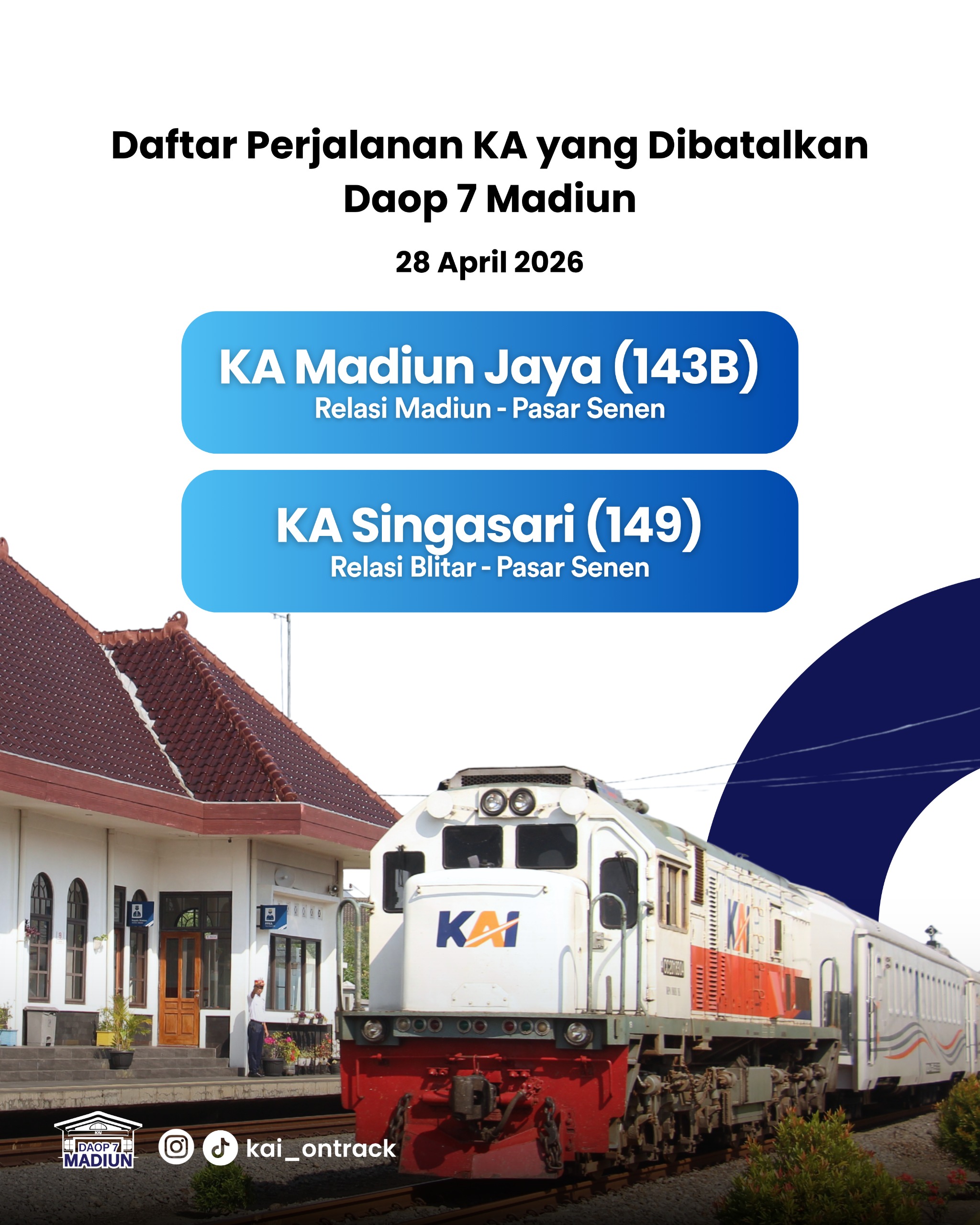 Hingga Selasa (28/4/2026), tercatat sebanyak 362 tiket telah berhasil direfund. Jumlah tersebut terdiri dari 173 tiket KA 143B Madiun Jaya relasi Madiun–Pasarsenen dan 189 tiket KA 149 Singasari relasi Blitar–Pasarsenen.