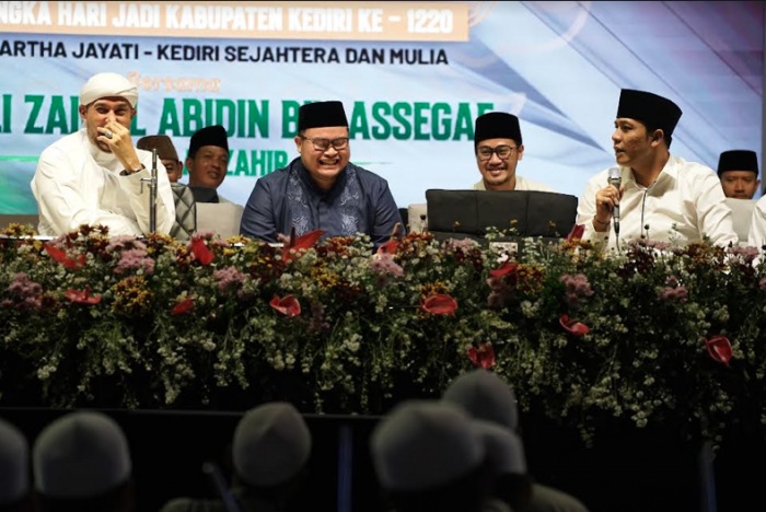 Mas Dhito, sapaan akrab Bupati Kediri, hadir di tengah-tengah ribuan Zahir Mania dalam acara selawat bersama Habib Ali Zainal Abidin Assegaf, yang merupakan rangkaian Hari Jadi ke-1220 Kabupaten Kediri.